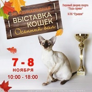 И ещё немного о кошачьем семействе — в ледовом дворце «Лада-Арена» состоится международная выставка породистых кошек из разных уголков страны. Организатором выступает клуб «Грация». Экспозиция будет проходить с 10:00 до 18:00. Стоимость: для взрослых — 100 рублей, для детей — 50 рублей. 0+